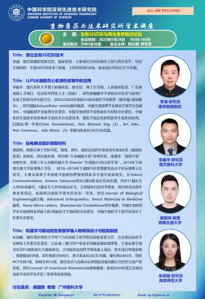 【2025年9月28日 医药所】生物3D打印与再生医学前沿论坛