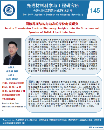 【2025年9月30日 先进材料科学与工程研究所】固液界面结构与动态的原位电镜研究