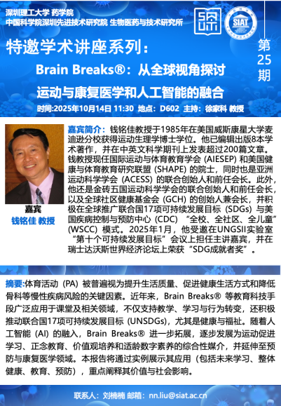 【2025年10月14日 药学院/医药所】Brain Breaks®:从全球视角探讨运动与康复医学和人工智能的融合