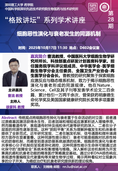 【2025年10月17日 药学院/医药所】细胞恶性演化与衰老发生的同源机制