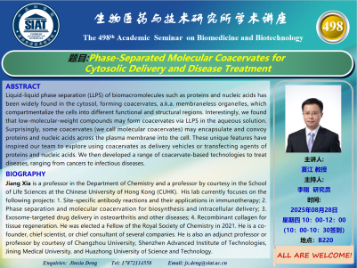 【2025年8月28日 医药所】Phase-Separated Molecular Coacervates for Cytosolic Delivery and Disease Treatment