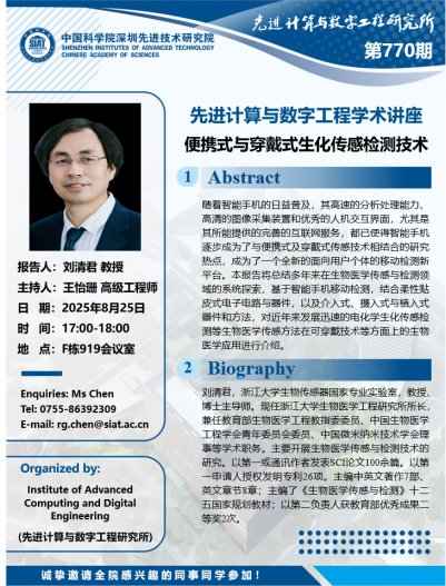 【2025年8月25日 数字所/计算机学院】便携式与穿戴式生化传感检测技术