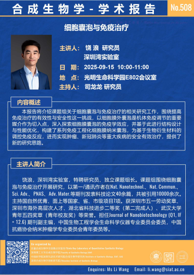 【2025年9月15日 合成所/合成生物学院】细胞囊泡与免疫治疗