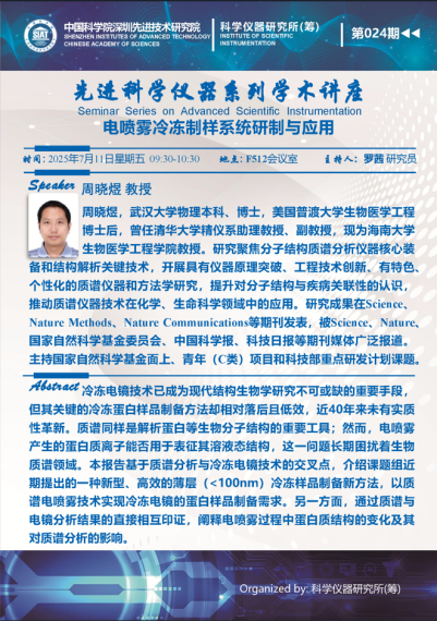 【2025年7月11日 科学仪器研究所(筹)】电喷雾冷冻制样系统研制与应用