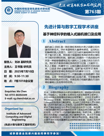【2025年7月10日 数字所/计算机学院】基于神经科学的植入式脑机接口及应用