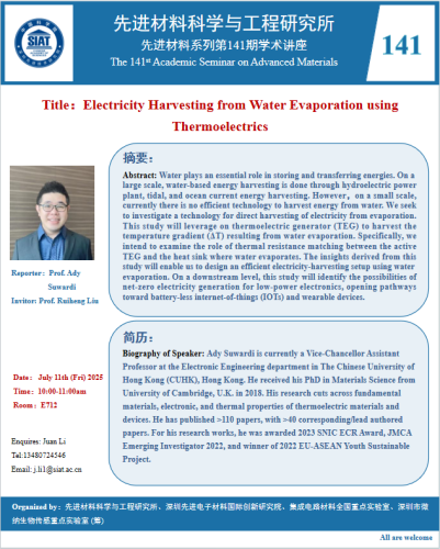 【2025年7月11日 先进材料科学与工程研究所】Electricity Harvesting from Water Evaporation using Thermoelectrics