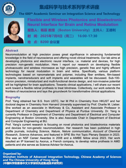 【2025年7月8日 集成所】Flexible and Wireless Photonics and Bioelectronic Neural Interface for Brain and Retina Modulation
