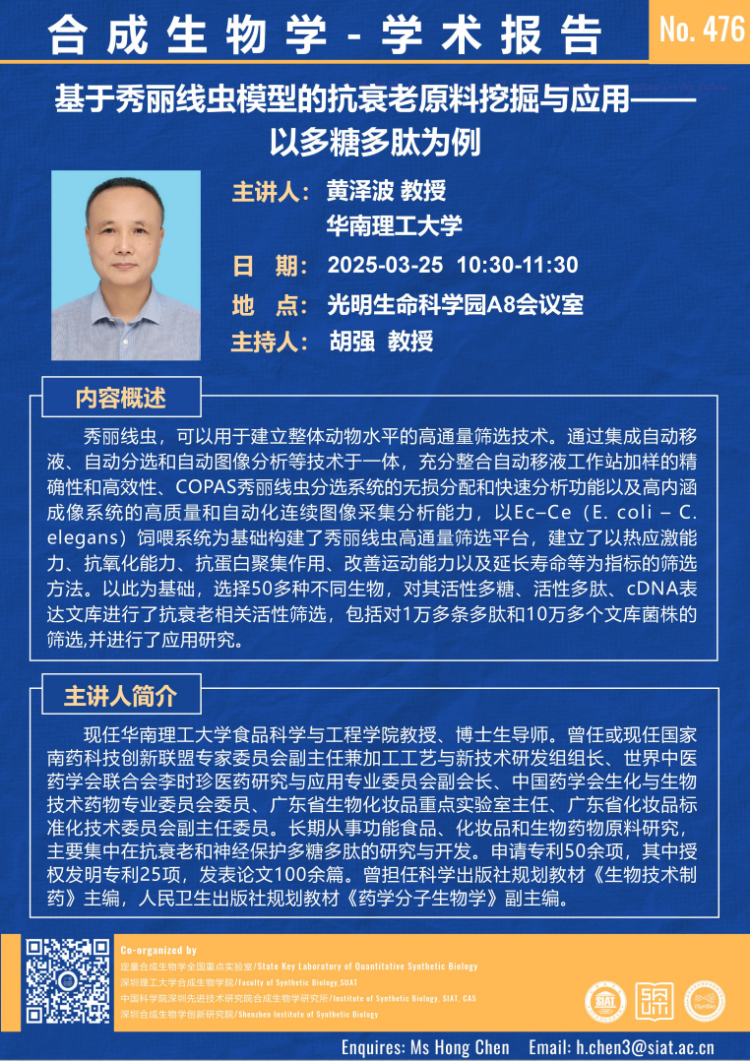 【2025年3月25日 合成所/合成生物学院】基于秀丽线虫模型的抗衰老原料挖掘与应用——以多糖多肽为例