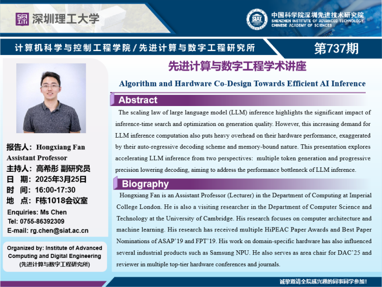 【2025年3月25日 数字所/计算机学院】Algorithm and Hardware Co-Design Towards Efficient AI Inference