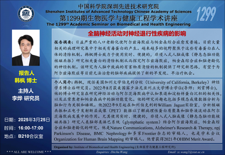 【2025年3月25日 医工所】全脑神经活动对神经退行性疾病的影响