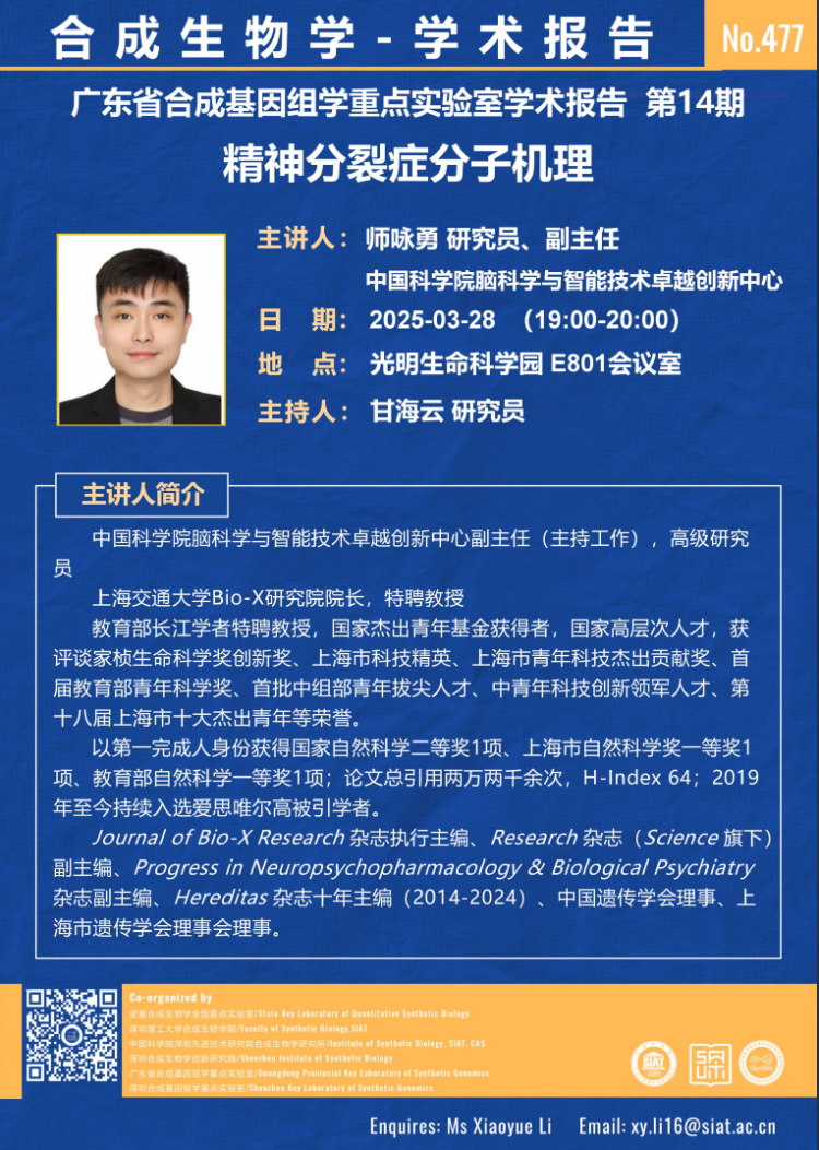 【2025年3月28日 合成所/合成生物学院】精神分裂症分子机理