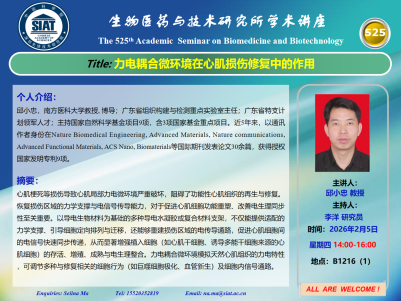 【2026年2月5日 医药所】力电耦合微环境在心肌损伤修复中的作用