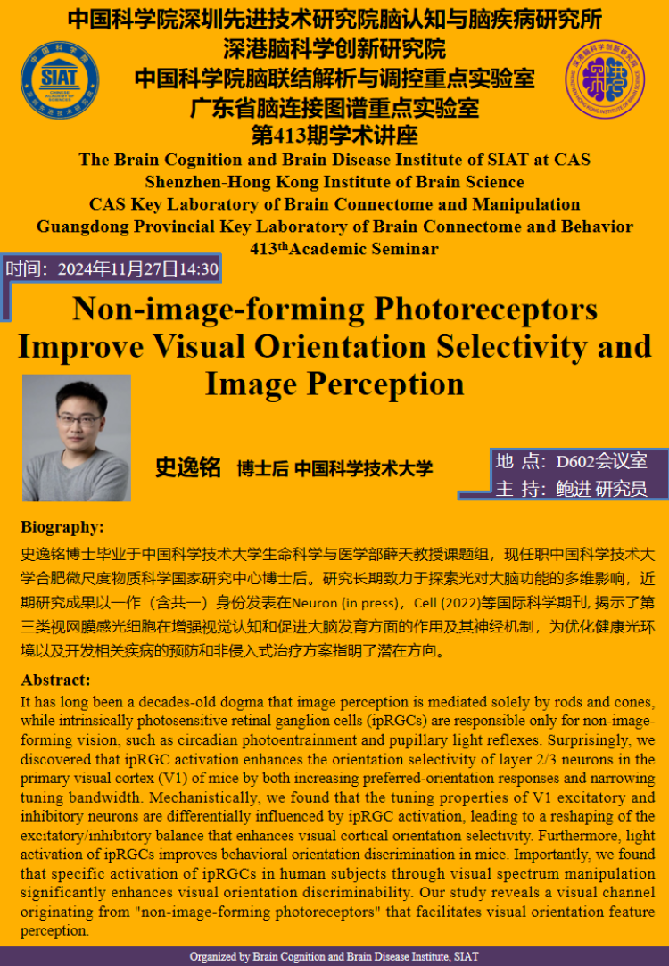 【2024年11月27日 脑所/深港脑院】Non-image-forming Photoreceptors Improve Visual Orientation Selectivity and Image Perception