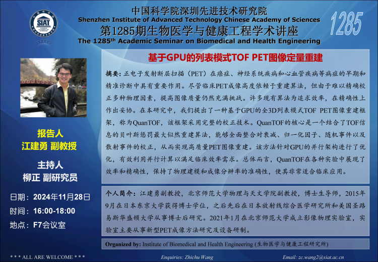 【2024年11月28日 医工所】基于GPU的列表模式TOF PET图像定量重建