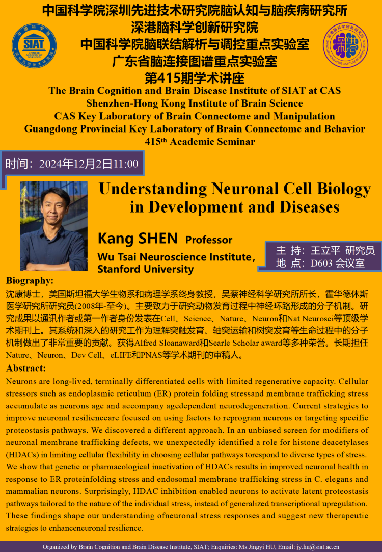 【2024年12月2日 脑所/深港脑院】Understanding Neuronal Cell Biology in Development and Diseases
