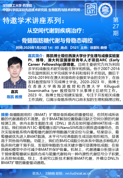 【2026年1月20日 药学院/医药所】从空间代谢到疾病治疗:骨髓脂肪糖代谢与骨稳态调控