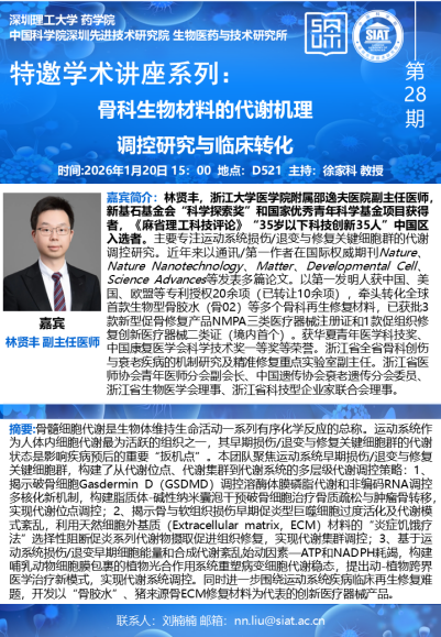 【2026年1月20日 药学院/医药所】骨科生物材料的代谢机理调控研究与临床转化