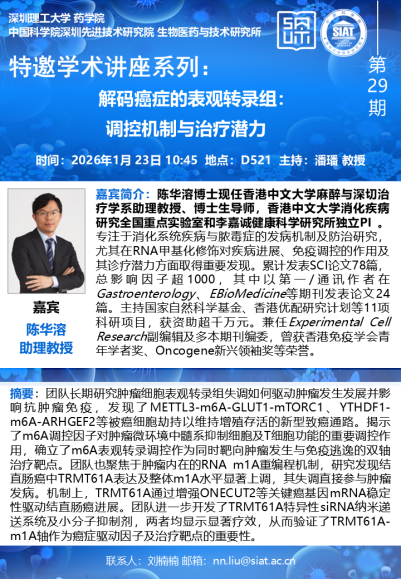 【2026年1月23日 药学院/医药所】解码癌症的表观转录组:调控机制与治疗潜力