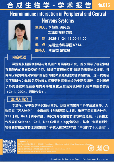 【2025年11月24日 合成所/合成生物学院】Neuroimmune interaction in Peripheral and Central Nervous Systems