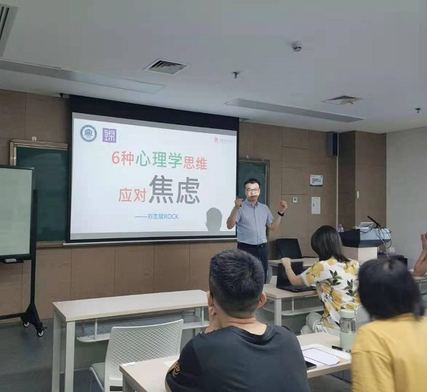 刘志斌老师用最新热点事件和真实的案例开场,列举生动形象的实际案例,向师生详细讲解了如何面对焦虑,以及运用6种心理学思维反焦虑的实战方法。刘老师语言风趣幽默,深入浅出地向大家传授了实用心理技巧,方法通俗易懂、轻松易学。在与师生的互动交流中,刘老师还分享了发现自我优势,提升个人自信的3种方法。整个讲座过程,轻松有趣,互动热烈,干货满满。参加讲座师生近50人,纷纷表示受益良多,意犹未尽。