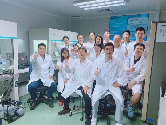 阮长顺课题组于3D生物打印实验室合影。胡成深位于第三排右一