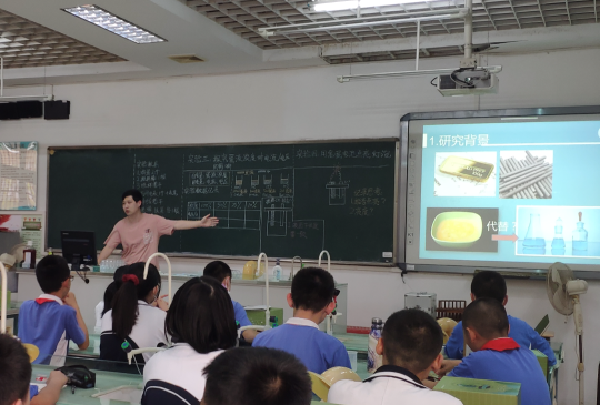 胡成深在中科院科普课堂为宝安中学(集团)初中部的学生上科学探究课