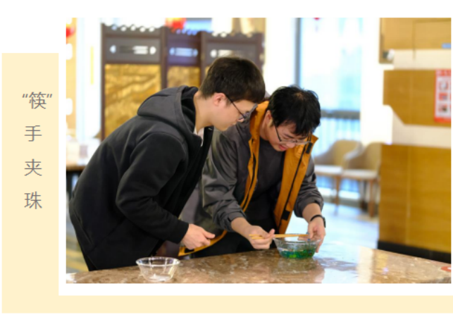 学生们除了做灯笼、包汤圆、猜灯谜等传统活动环节,还参与游戏活动,乒乓突击、“筷”手夹珠等趣味小游戏,大家玩得不亦乐乎!