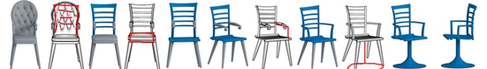 第二篇论文是中心助理研究员谢晓华和博士后徐凯等人的Sketch-to-Design: Context-based Part Assembly。基于手绘草图设计三维对象是一个难题,尤其是当用户本身的设计意图模糊、对设计对象的几何形式尚未明确的时候。为此,研究人员根据已有的模型上下文信息给用户提供有效的借鉴和启发,从而使设计过程变得便利。研究人员把模型设计问题转化为模型导览问题,即基于大量预分割的三维模型获取多种可能的部件重组结果供用户选择,提出了一个交互式草图设计系统,用户只需勾画每个部件的二维突出特征即可完成对三维模型的组装。系统对每个部件相应的草绘笔画单独进行分析,但是会根据部件间的上下文信息通过一个交互界面返回相关的三维形状建议。随着建模过程的推进,越来越多部件被选定,从而上下文线索所起的主导作用也越明显,所设计的模型会快速收敛到最终形状。本系统的关键在于利用事先学习好的部件间上下文信息帮助用户快速考察不同的部件组合。实验已经证明本方法基于现有的形状集合设计新造型存在有效性。(图2)