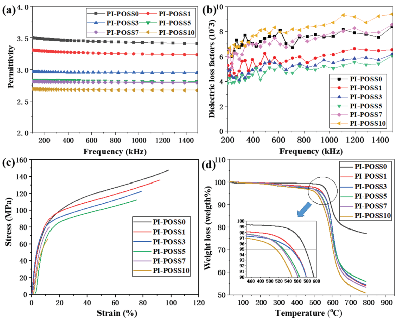 图1. 低温固化PI-POSS 纳米复合材料介电、力学及热学性能