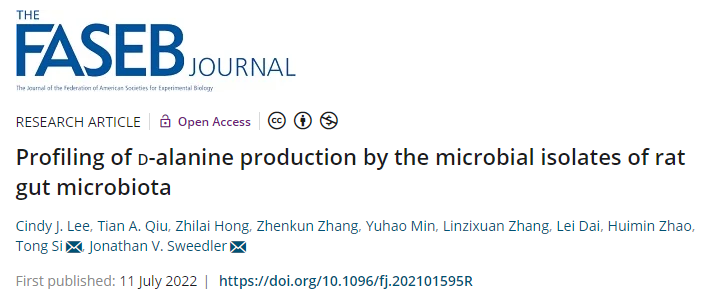 FASEB J | 动物肠菌合成宿主神经活性D型氨基酸