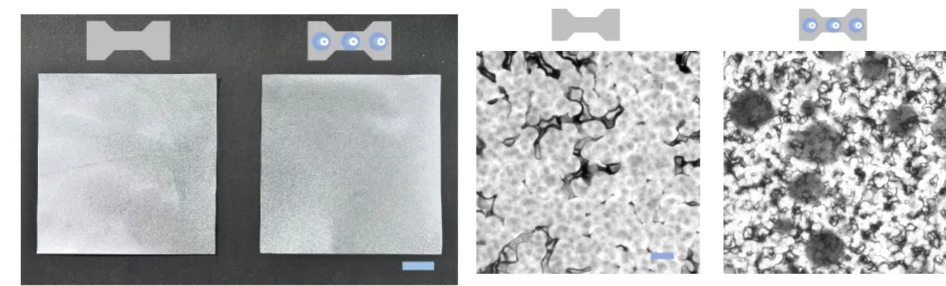 图2. 普通PCL塑料和“活”塑料的宏观、微观照片
