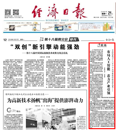 《经济日报》:中科院展示了二百六十五项最新科技创新成果——布局人工智能 着力产业引领