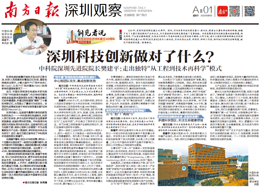 《南方日报》:中科院深圳先进院院长樊建平:深圳科技创新做对了什么?