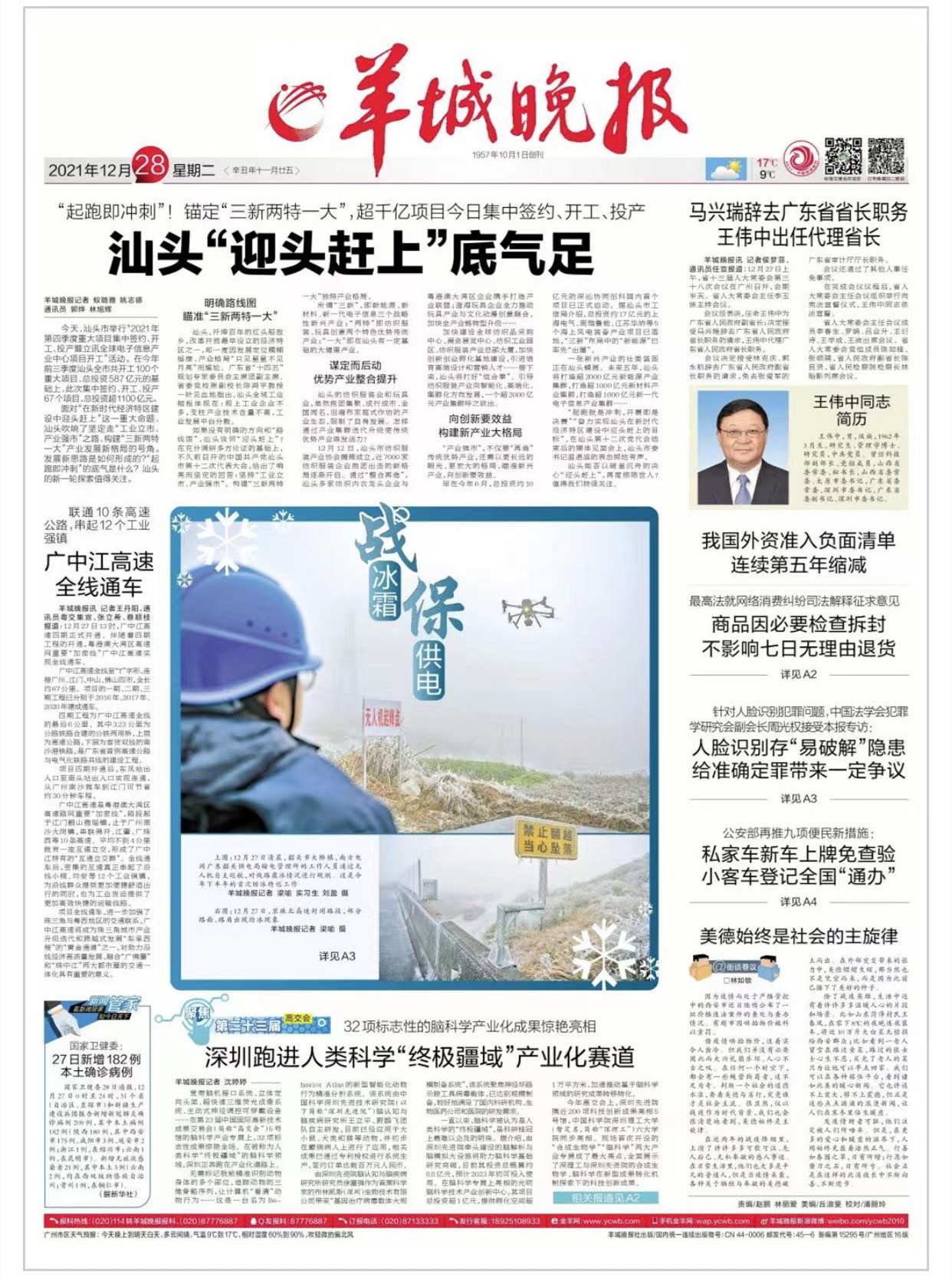 《羊城晚报》A1头版:深圳跑进人类科学“终极疆域”产业化赛道