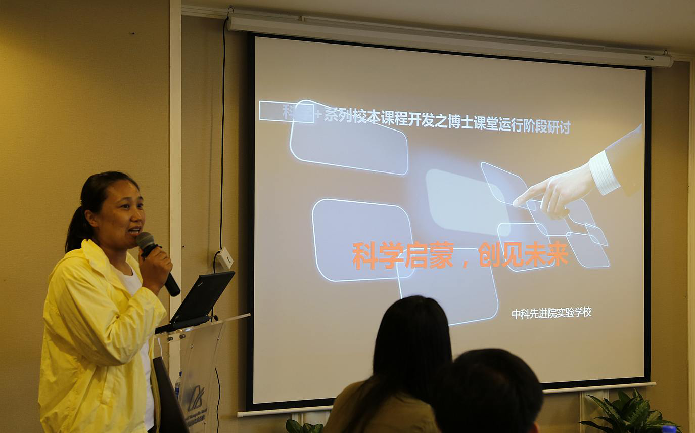 在会上,深圳先进院发展处文宣办博士课堂工作负责人丁宁宁首先介绍了2018年春季学期博士课堂运行情况,以及在“科学+”联盟和“粤港澳大湾区青少年创新科学教育联盟”两个平台的亮点工作。中科实验学校教师发展中心副主任丁秀娟在主题为“科学启蒙,创见未来”的报告中,带来了本学期学校学生及家长对博士课堂课程的反馈问卷。在600多份问卷中,表示喜欢及非常喜欢博士课堂的学生达到约95%,学校表示,博士课堂为学生发展带来了科学素养和科学精神上的提升。
