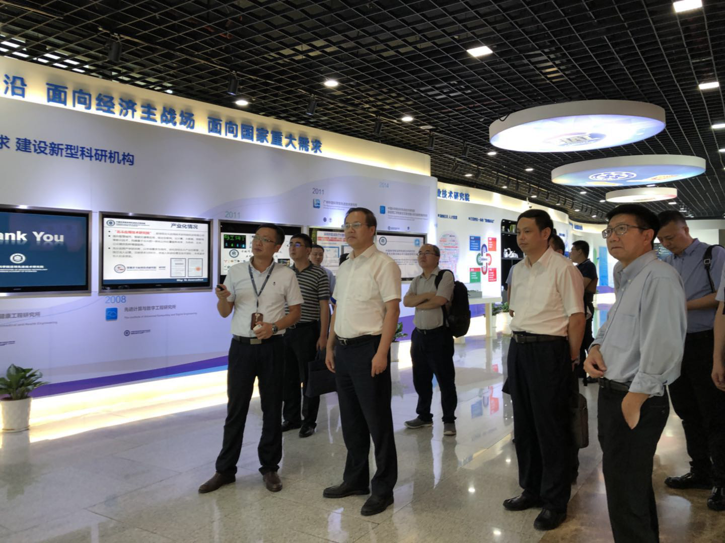 杭州市委常委、组织部部长毛溪浩(前排中)一行听取深圳先进院发展情况介绍