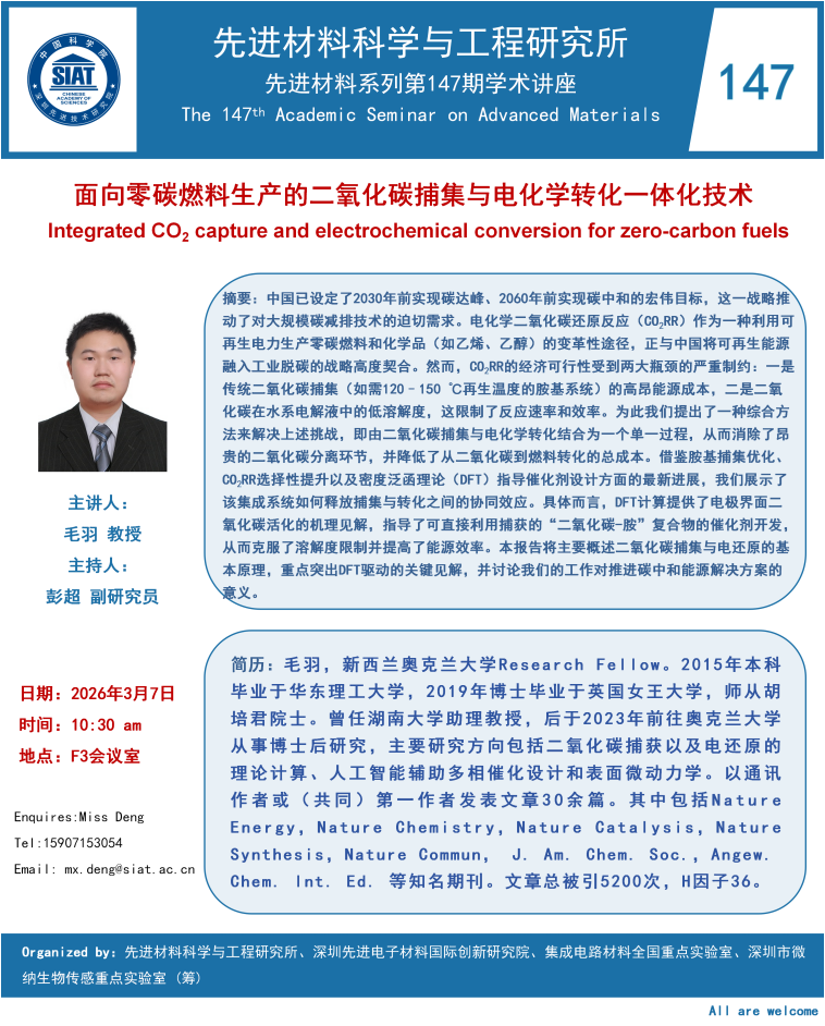 先进材料科学与工程研究所“先进材料系列”第147期学术讲座将于03月07日(周六)10:00,在F3会议室进行。