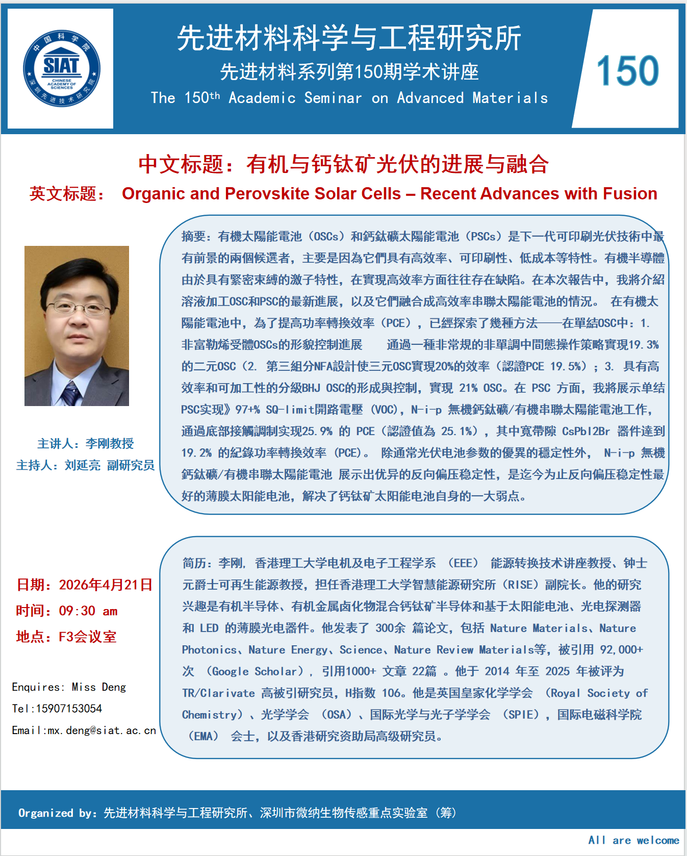 【2026年4月21日 先进材料科学与工程研究所】有机与钙钛矿光伏的进展与融合