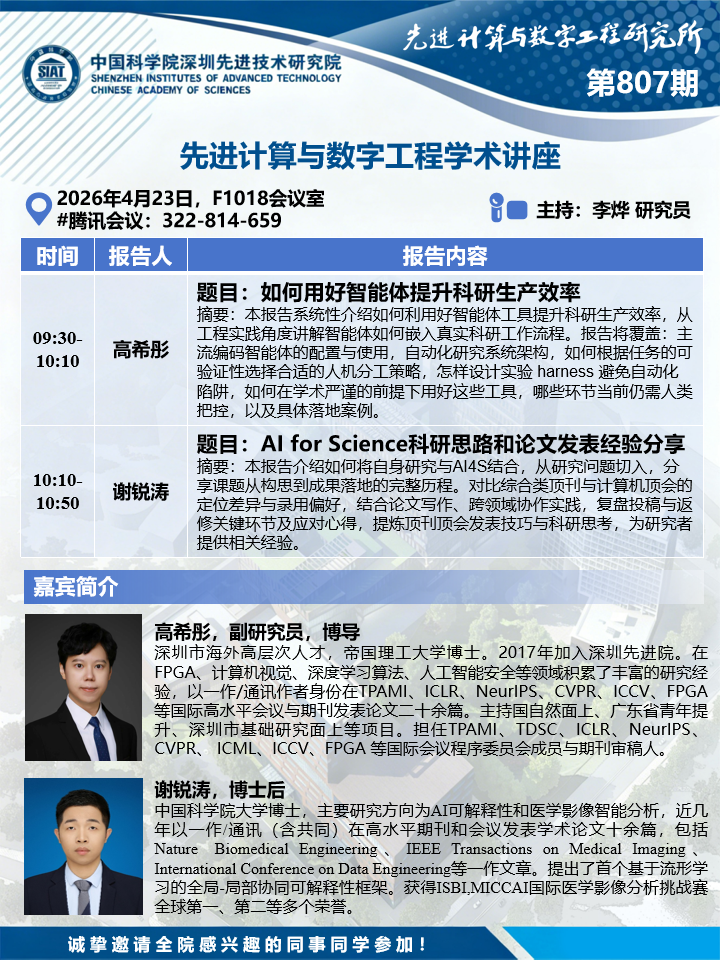 【2026年4月23日 数字所/计算机学院】《如何用好智能体提升科研生产效率》&《AI for Science 科研思路和论文发表经验分享》